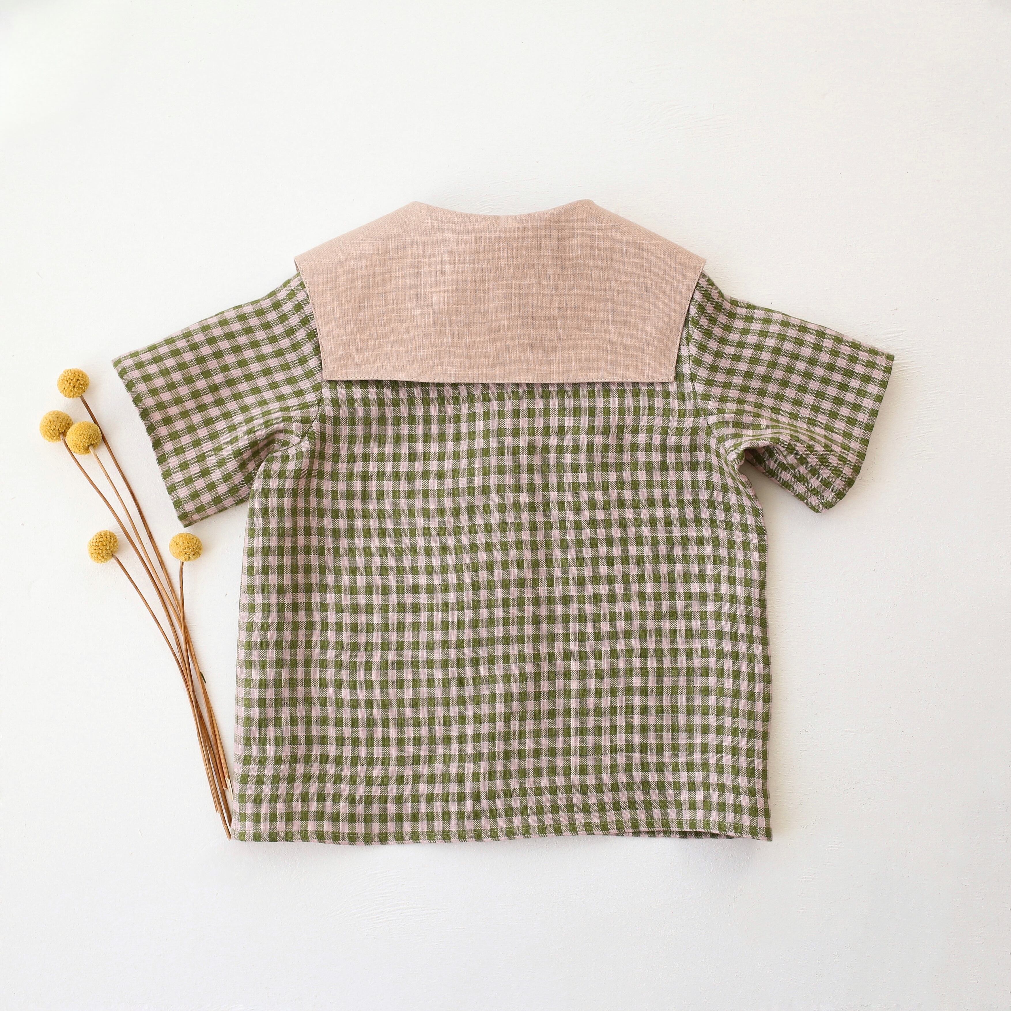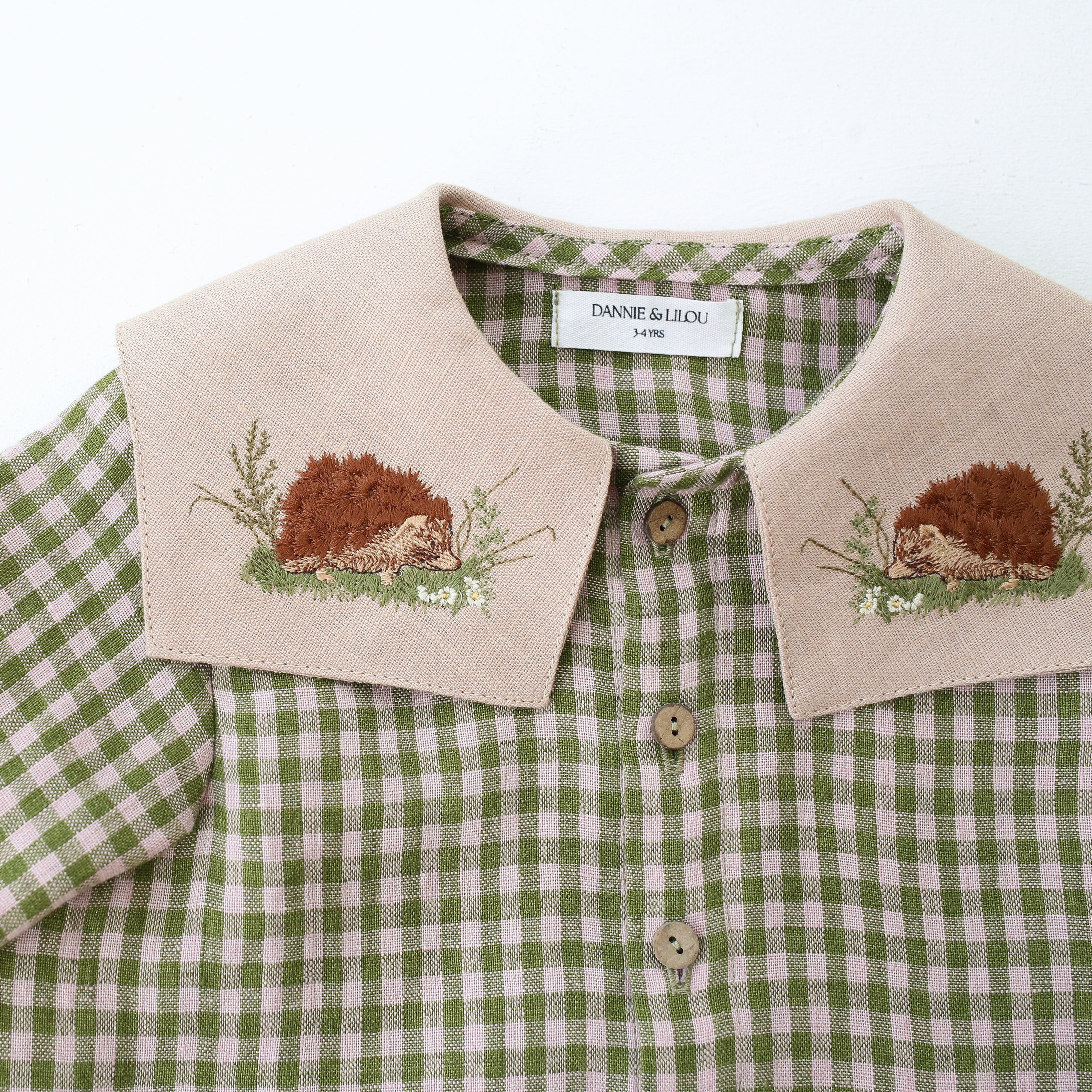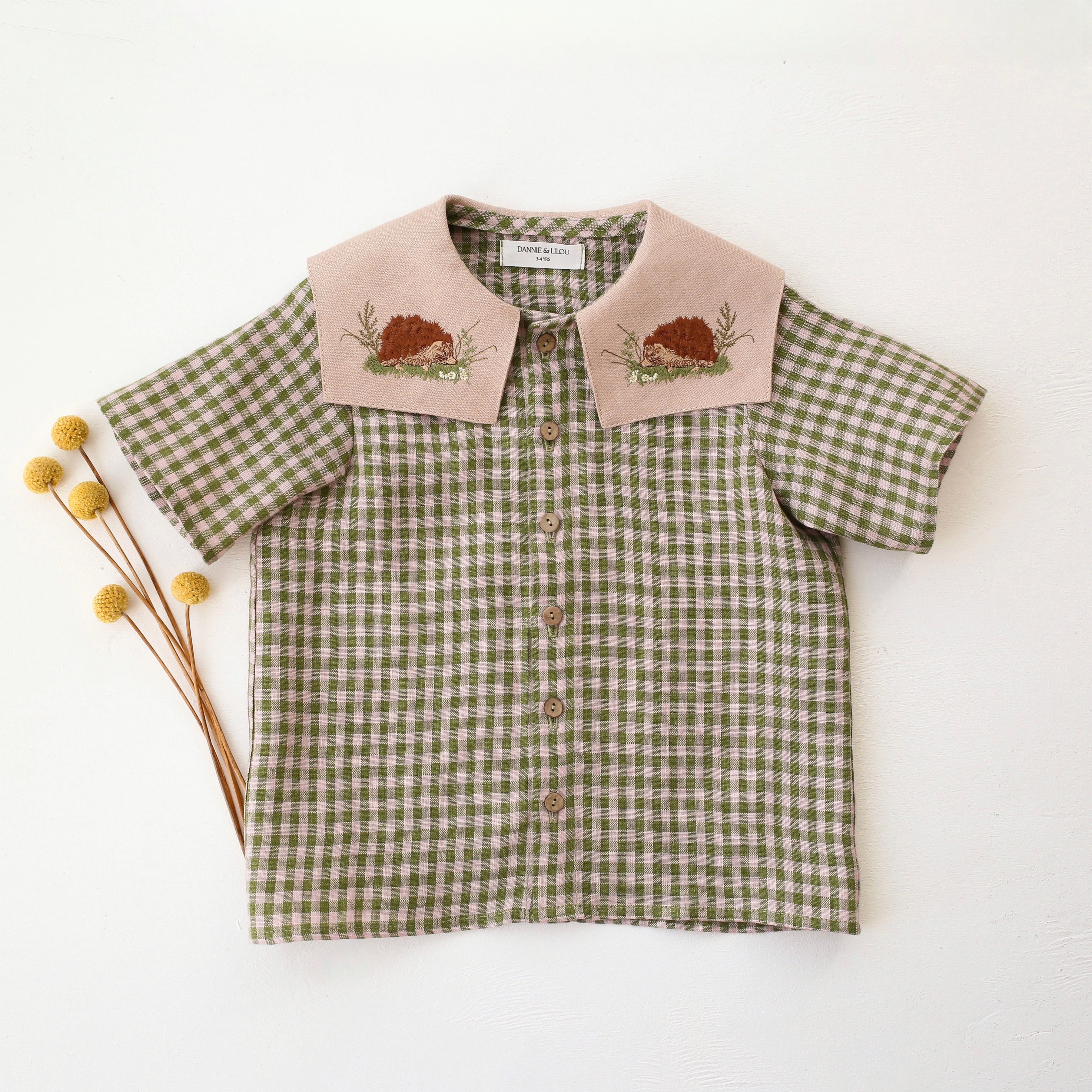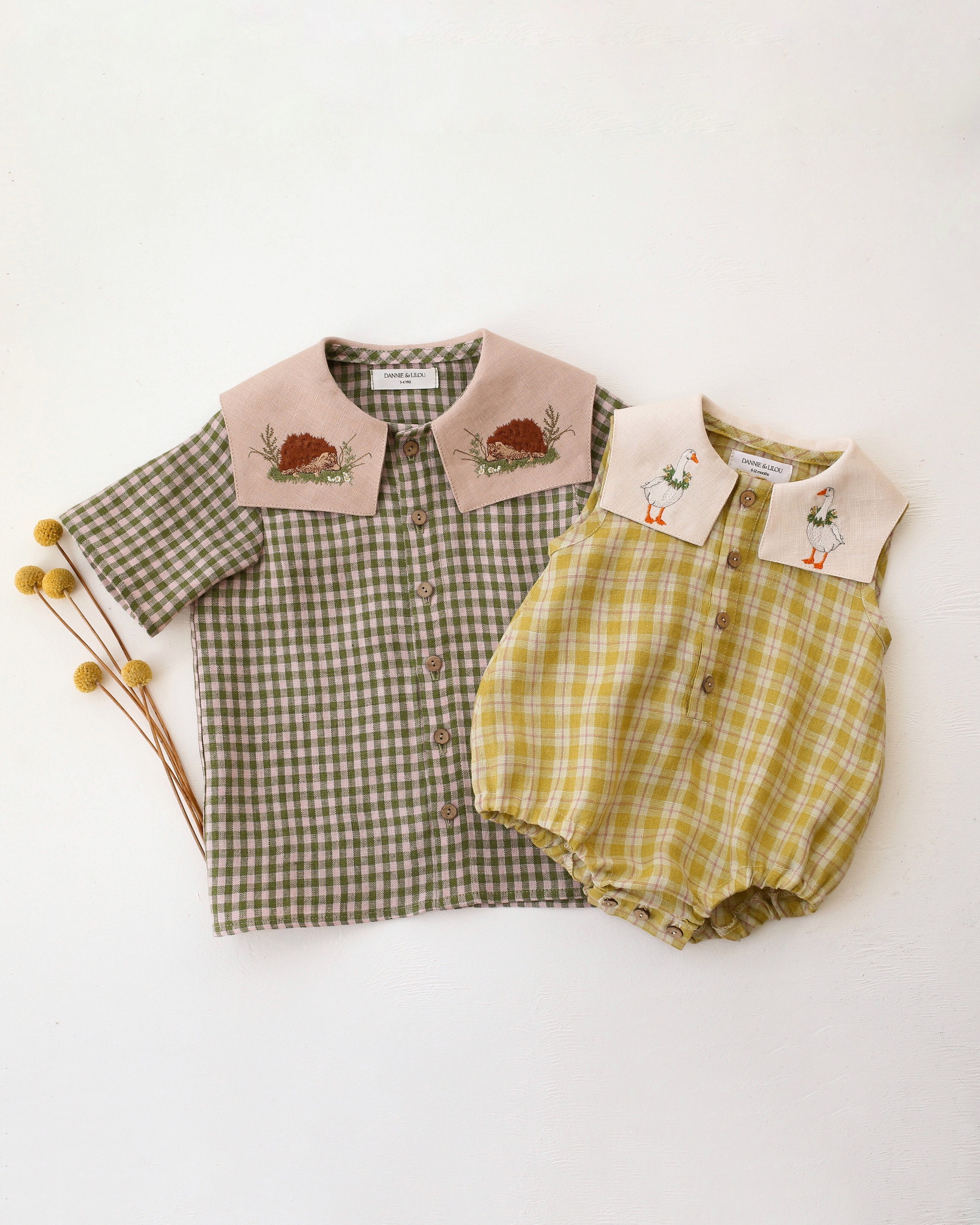 ボディと襟のリネン生地と、襟元の刺繍をお選びいただき、自由にカスタマイズが可能です。