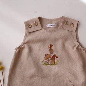 ボディのリネン生地と胸元の刺繍をお選びいただき、自由にカスタマイズが可能です。