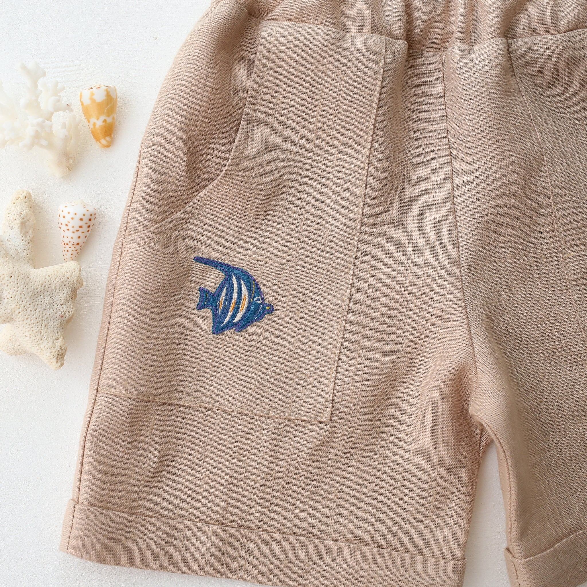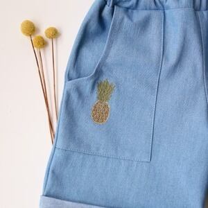 ボディのリネン生地とポケットの刺繍をお選びいただき、自由にカスタマイズが可能です。