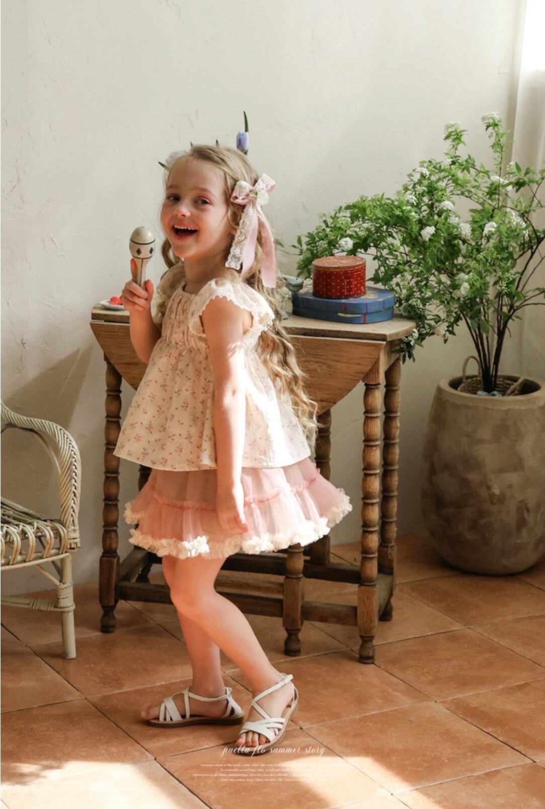 puella FLOはヨーロッパアンティークを思わせる、繊細なレースやフリル使いのガーリーなお洋服から普段使いしやすいカジュアルなアイテムまで、他とは違う大胆でちょっぴりクセのあるデザインが人気の韓国子供服ブランド。