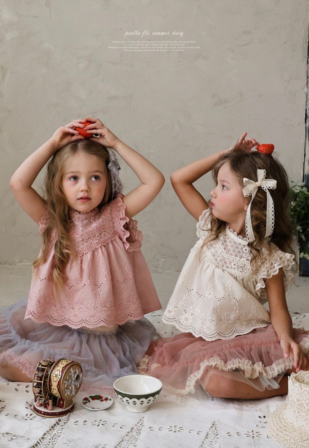 puella FLOはヨーロッパアンティークを思わせる、繊細なレースやフリル使いのガーリーなお洋服から普段使いしやすいカジュアルなアイテムまで、他とは違う大胆でちょっぴりクセのあるデザインが人気の韓国子供服ブランド。