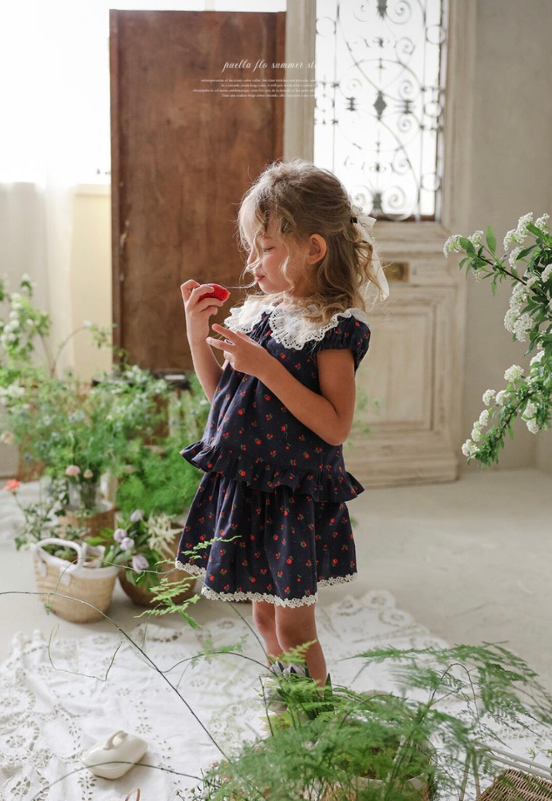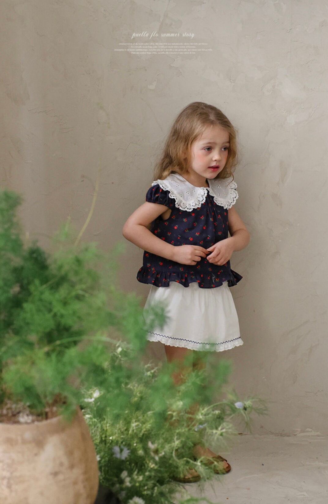 puella FLOはヨーロッパアンティークを思わせる、繊細なレースやフリル使いのガーリーなお洋服から普段使いしやすいカジュアルなアイテムまで、他とは違う大胆でちょっぴりクセのあるデザインが人気の韓国子供服ブランド。
