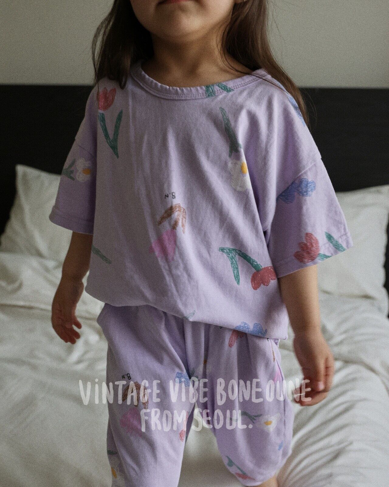 《 予約 》【 BONEOUNE 】Crayon flower all print T