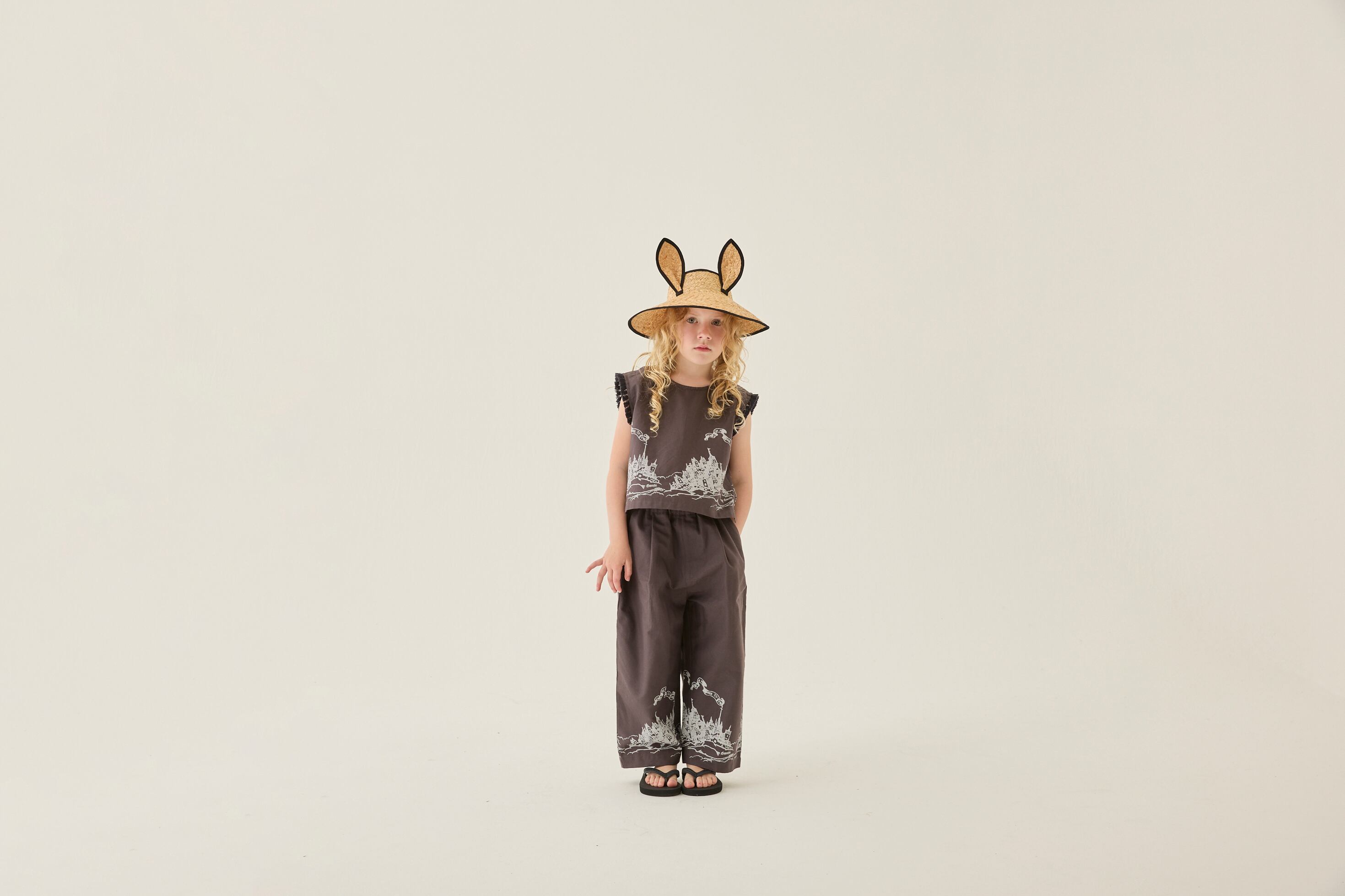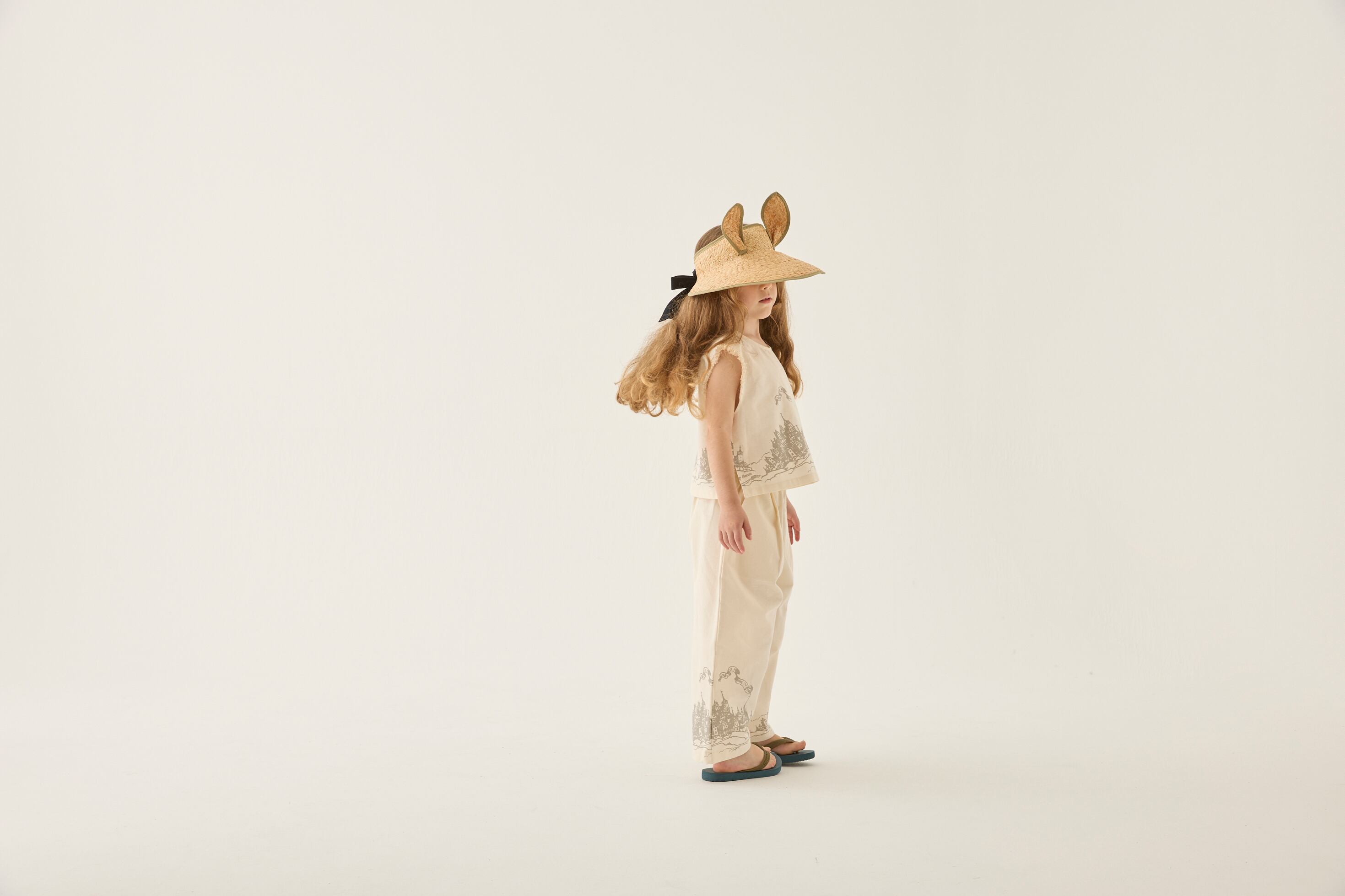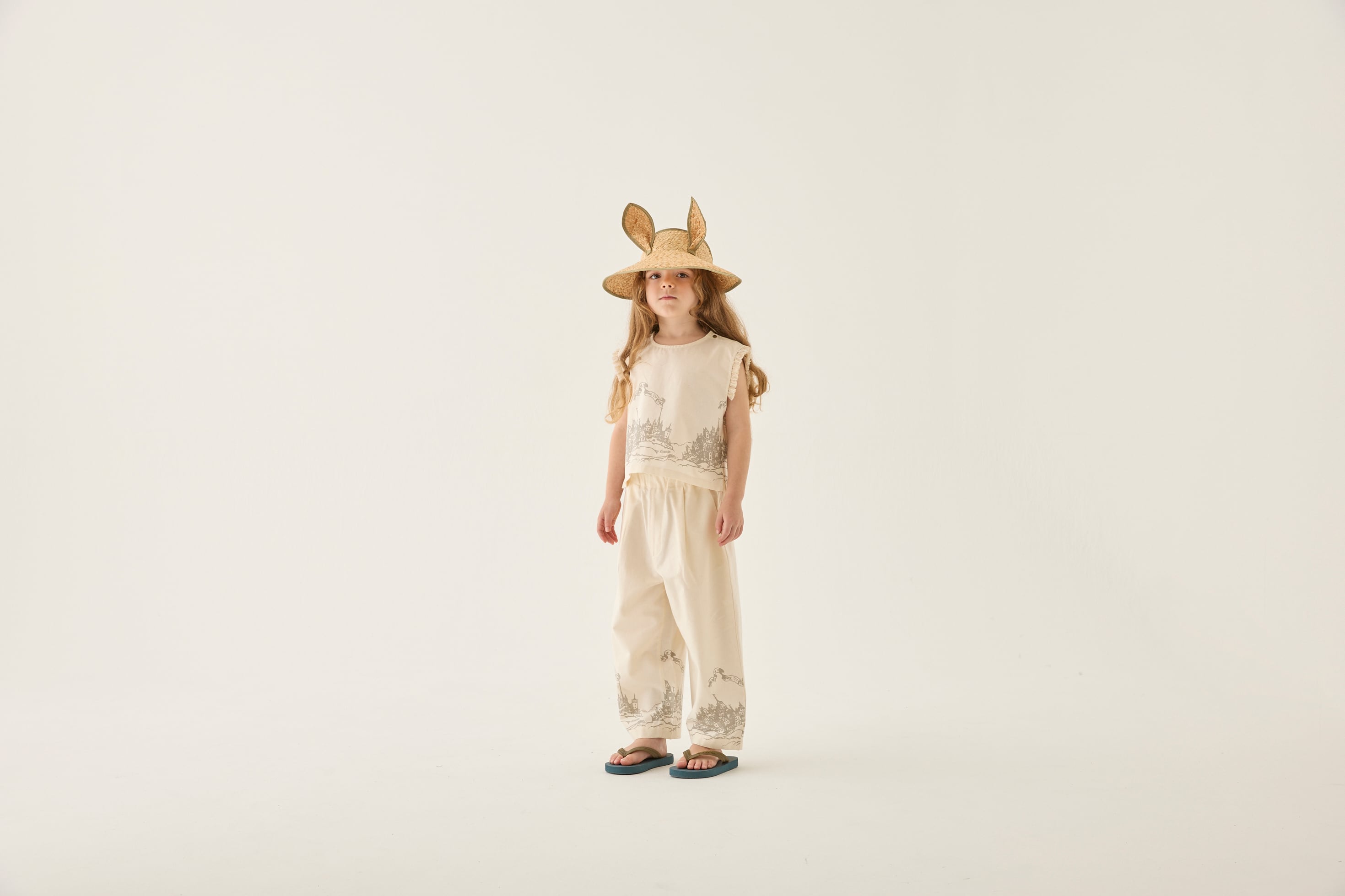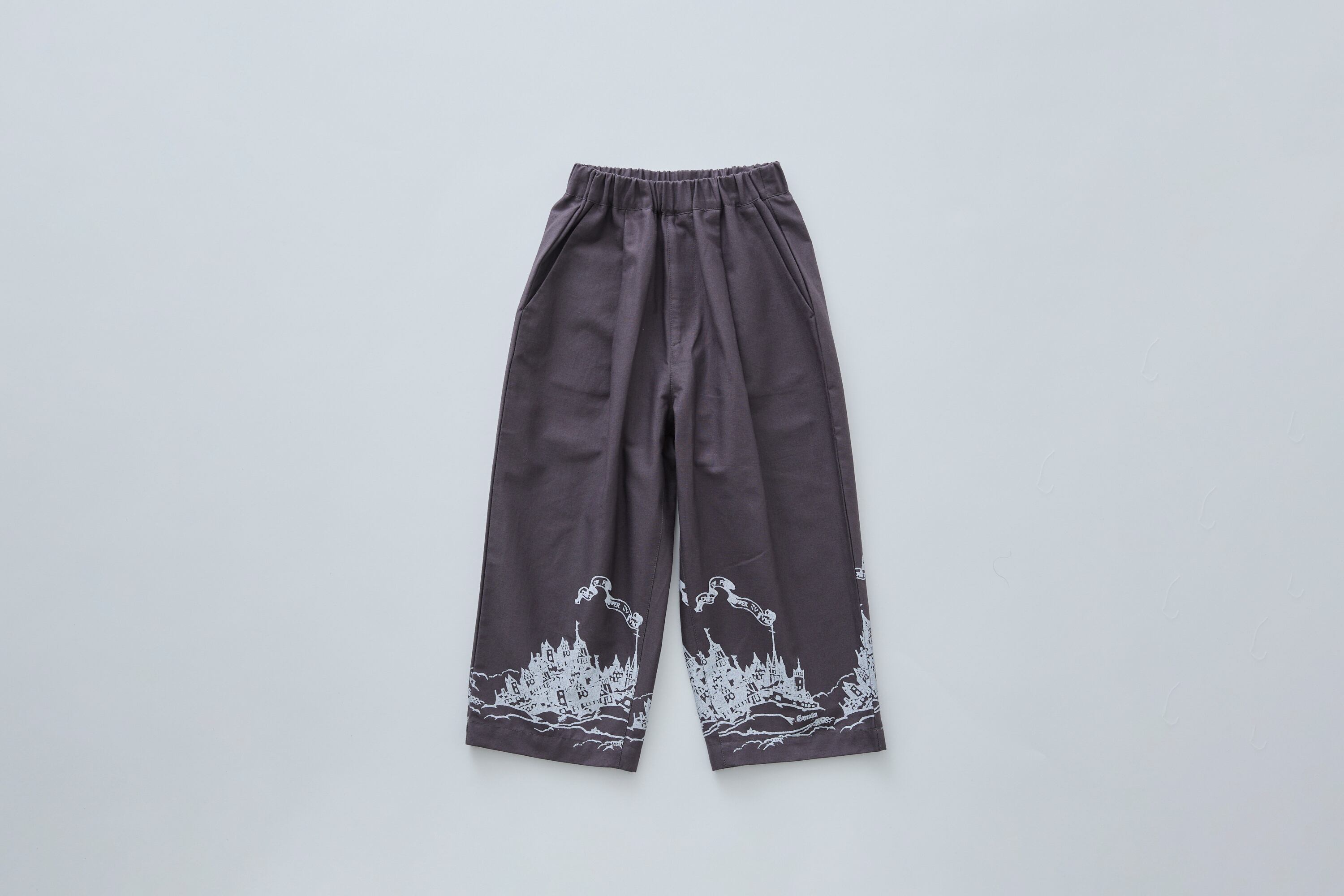 妖精王国の城下町をコラージュしたオリジナルの図案を、アイテムの裾に連なるようにプリントを入れたシリーズ。